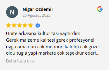 Tuğla Yapı Market firması olarak, dekoratif kültür taşı ihtiyaçlarınıza uygun çözümler sunuyoruz. Sektörde kaliteli ve estetik ürünlerimizi sizlere en uygun fiyatlarla ulaştırıyor, mekanlarınıza şıklık ve zarafet katıyoruz.